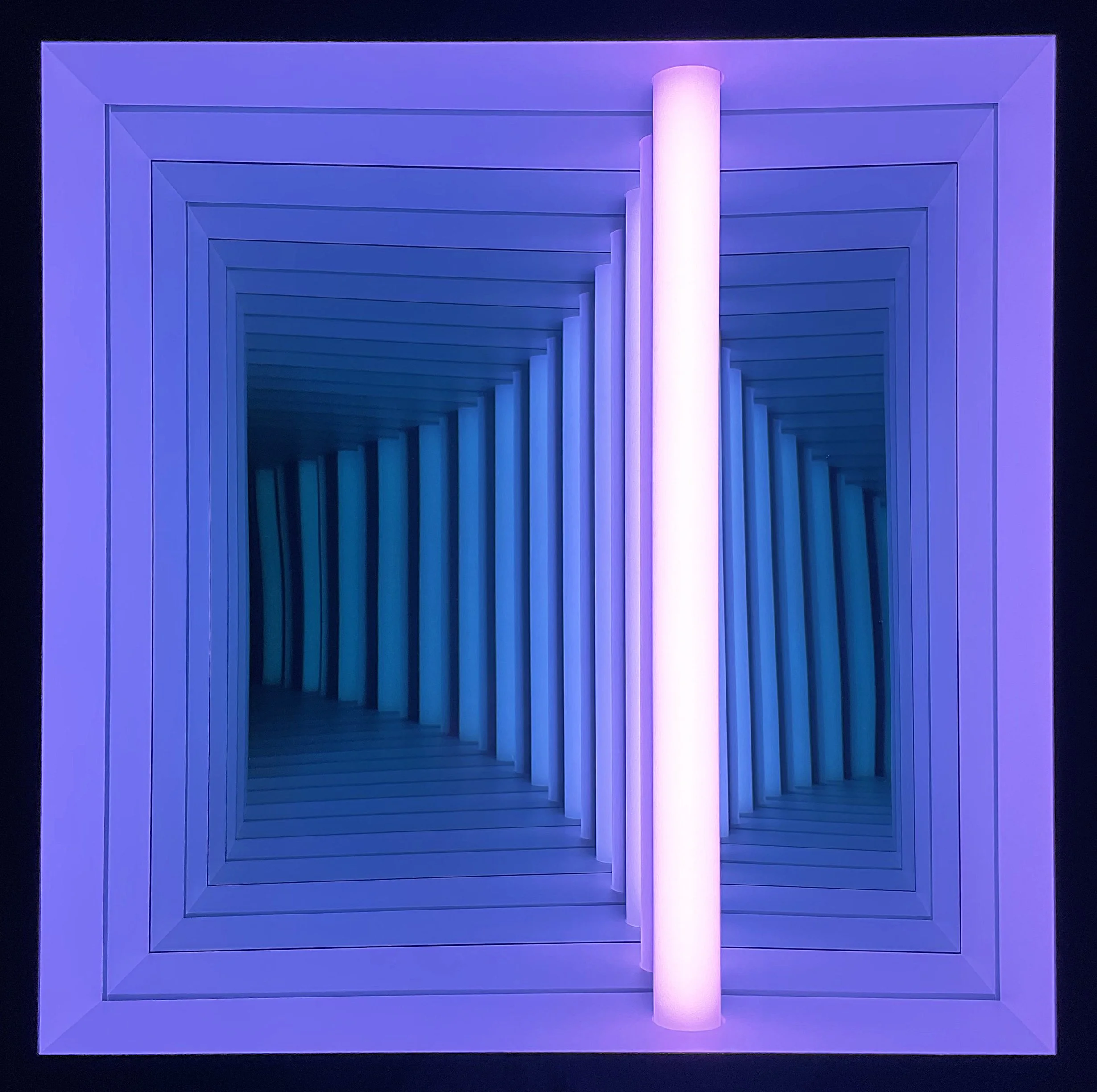 Ahn has translated geometric painting and the Zen practice of mediation into an art of light, space, and technology, enticing the viewer to look deeply into his frame of environments. His works create an optical and bodily illusion of infinity through apparent limitless space. The notion of the void distiguishes his work amid the vast panoply of ways that artists have used light as a medium since the experiments of the 1920s and particularly since the 1960s.